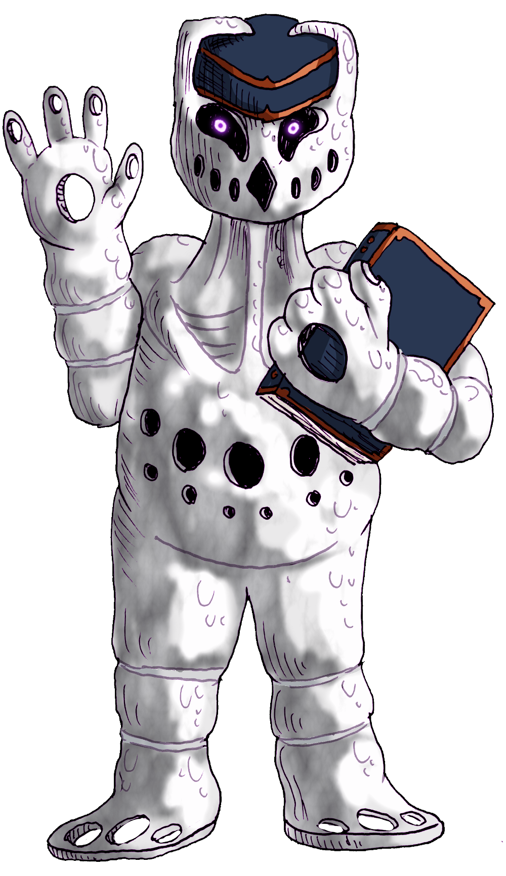 Caesiumon is an unashamedly chipper and talkative soul; befitting his role as one of the stewards manning the rail terminals to and from the Spokes. He is infectiously friendly, though far from naive, as he takes his role and responsibility very seriously and is a stickler for the rules. Even so, his main responsibility is to make sure any wards of his are comfortable and well-looked after on any journey they take. That is his pride, and he stands by it.