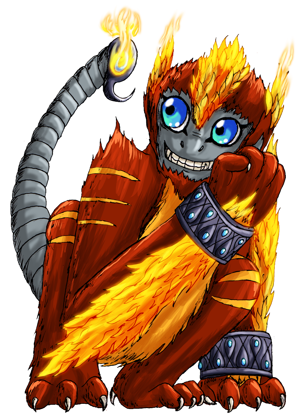 Coremon is one of the brightest stars of the Fire Kingdom, in more ways than one. With a cheery disposition and an offer of a helping paw to anybody and everybody who needs it, he has gained immense popularity within the Fire Forces as the go-to Digimon. It doesn't matter if the task seems impossible; he will attack it with grit, determination and gusto, and more often than not comes through. Don't let his level and short stature fool you; his physical skills and athleticism are something to marvel at, and he's put many a smug Champion level in their place before.