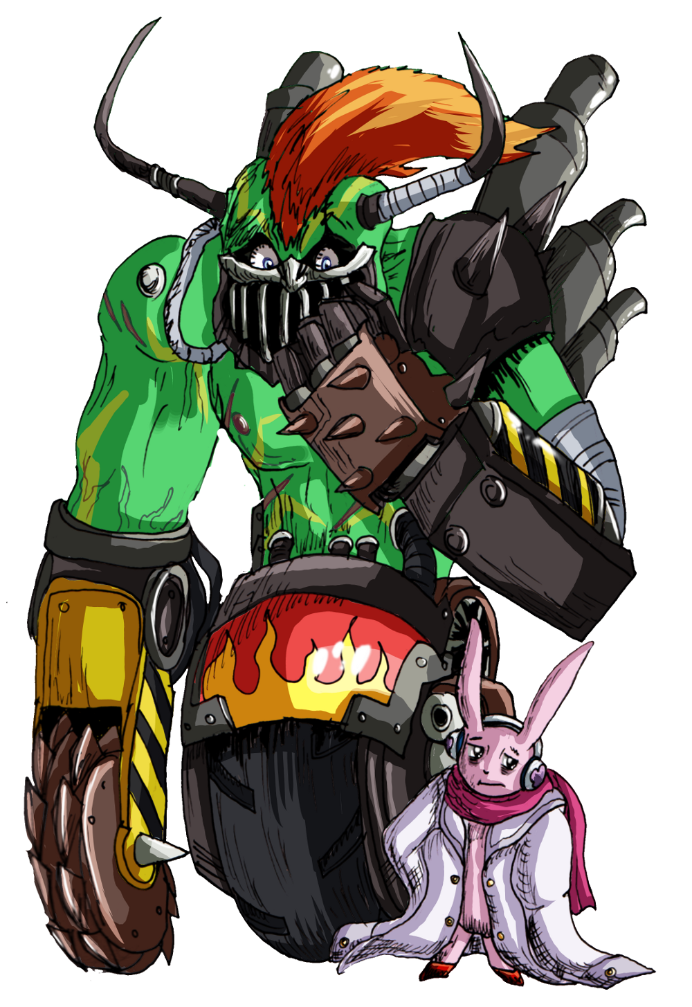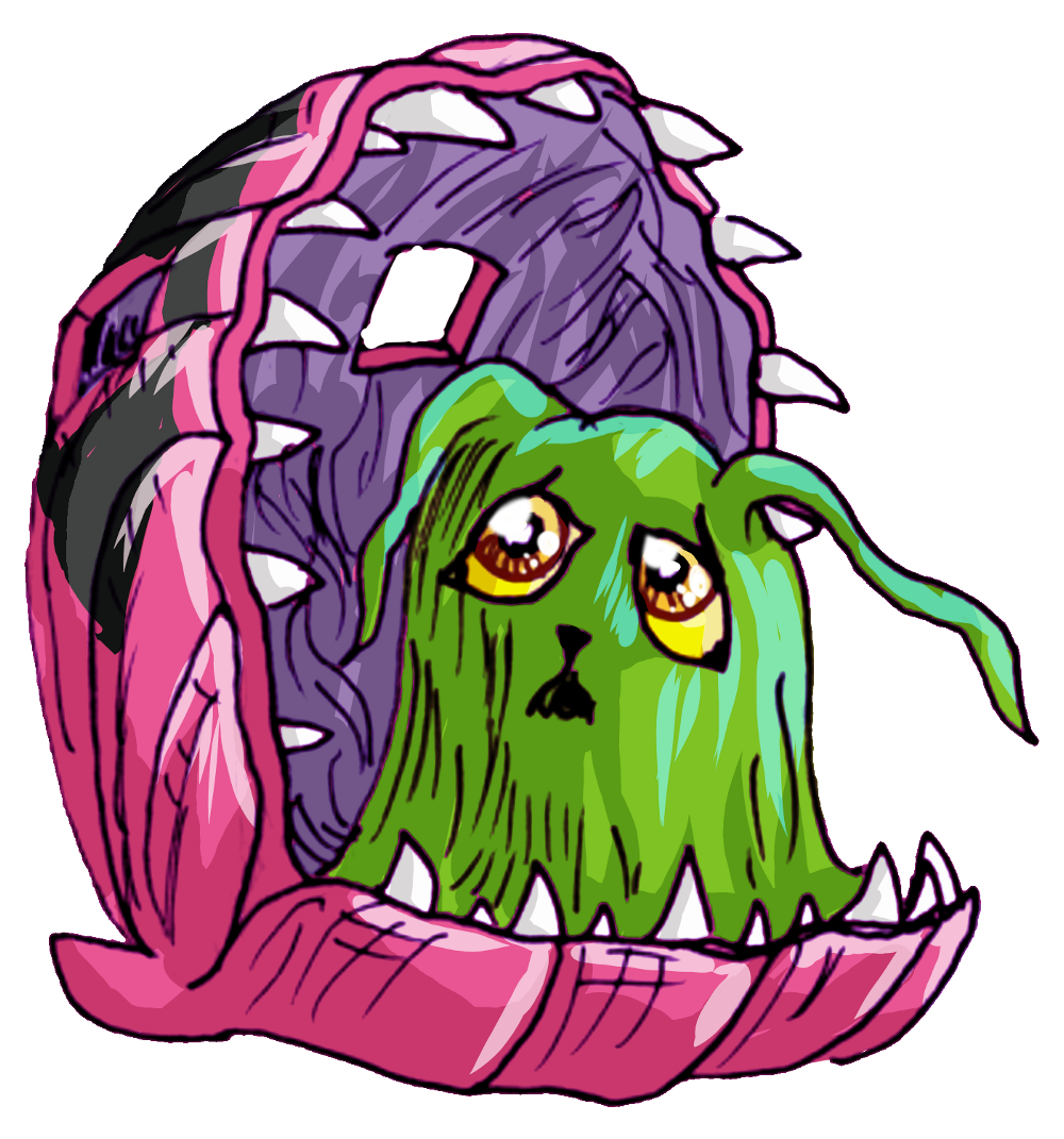 Rebellimon acts as his nurse; silent and handy, if rather timid, and doing whatever he can in the most apologetic fashion ever. Perhaps he does it to try and temper Cutemon's most grumpy impulses. We may never know.